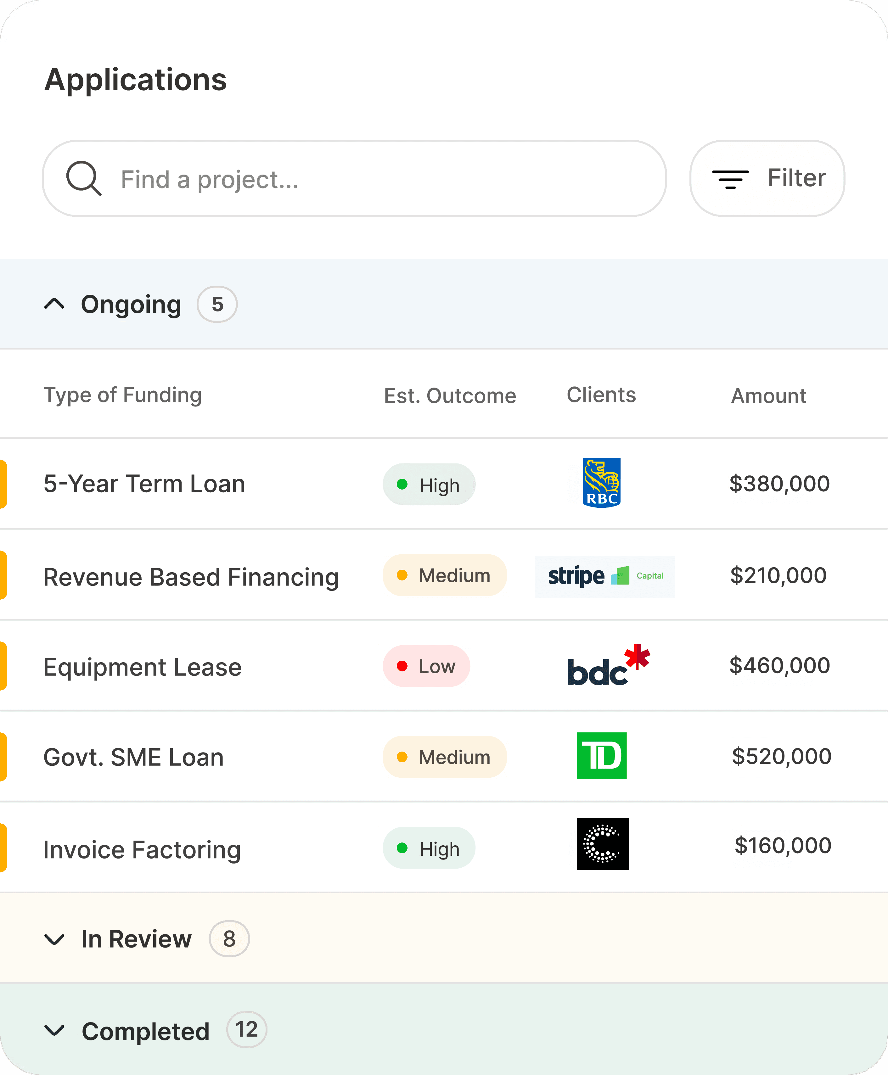All-in-one platform for finding financing options for your business.